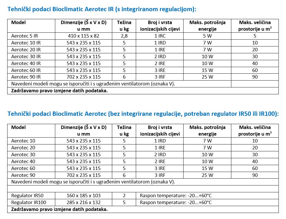 Bioclimatic Aerotec sa ugrađenim ili eksternim kontrolerom intenziteta ionizacije